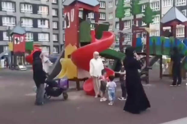 Занятую женщинами в платках детскую площадку под Москвой сняли на видео. Ролик опубликовал телеканал «Церьград» в Telegram.